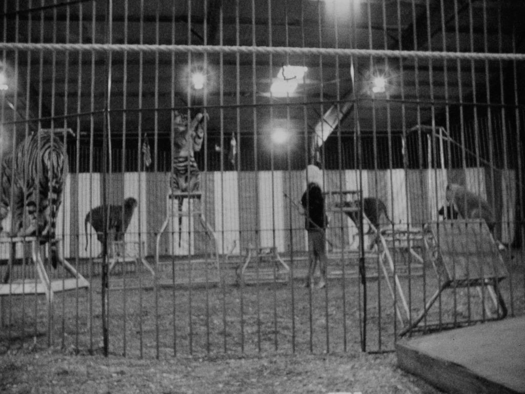 I have little recollection of filming this except for reacting with a kind of instinctive horror to the subjugation of these large animals, and to some extent the people, to tawdry entertainment. It was a small, shabby, improvised outdoor circus somewhere in Long Island under harsh lights at night. Even back then, it was rare to find such a display without camp or self-recognition of any kind.